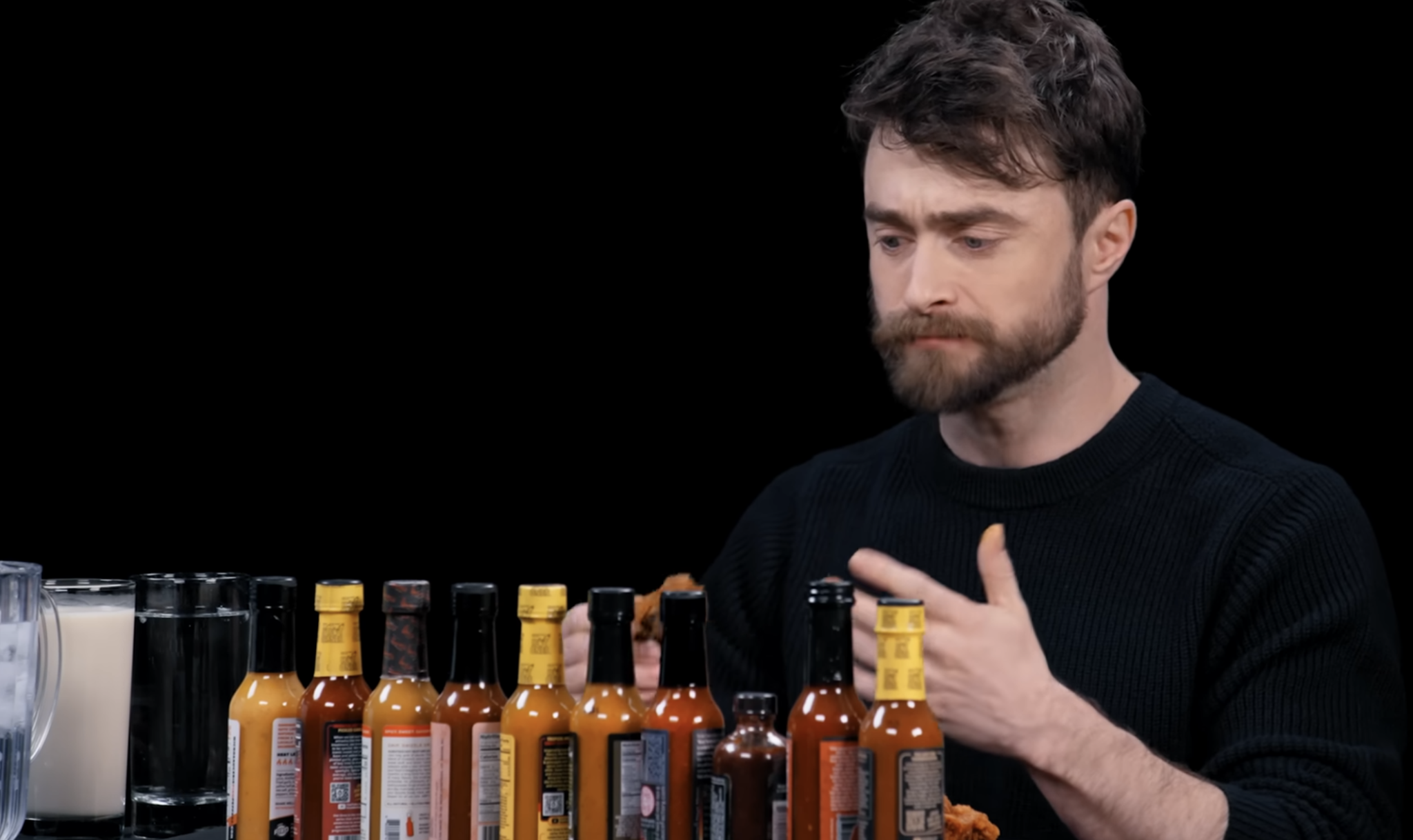 Daniel Radcliffe a következmények miatt aggódik, miközben csípős csirkeszárnyakat eszik